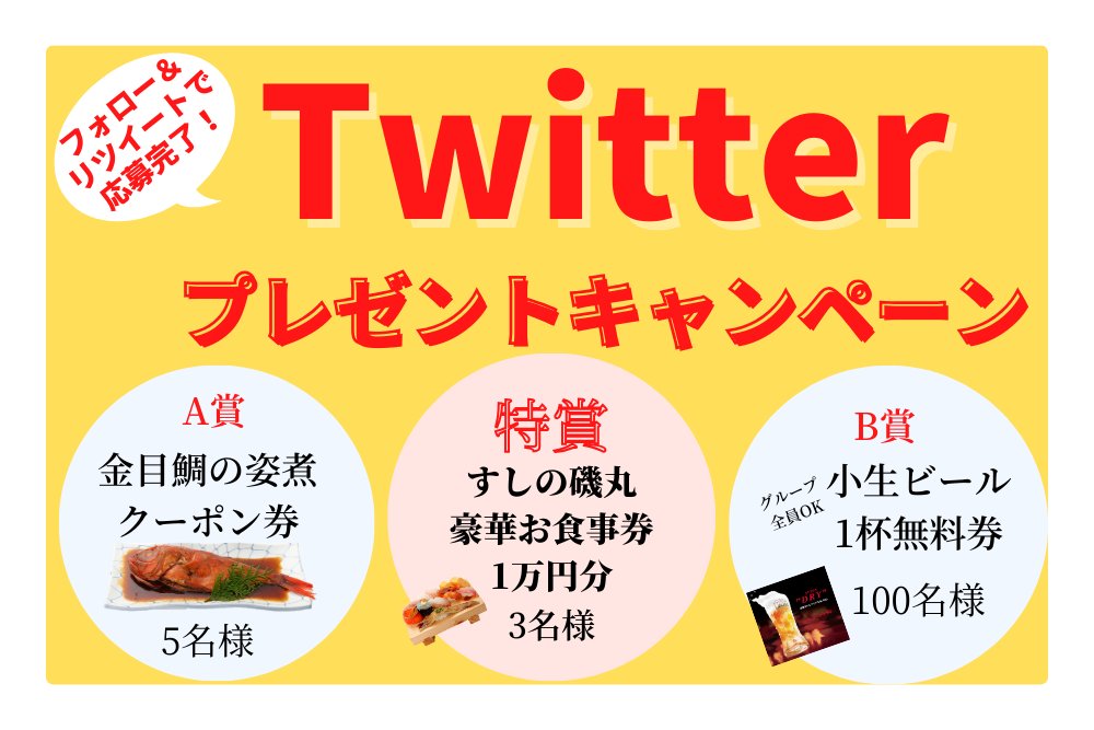 特賞:すしの磯丸お食事券 1万円分 3名様